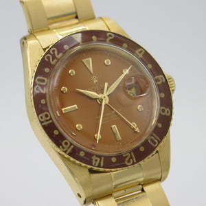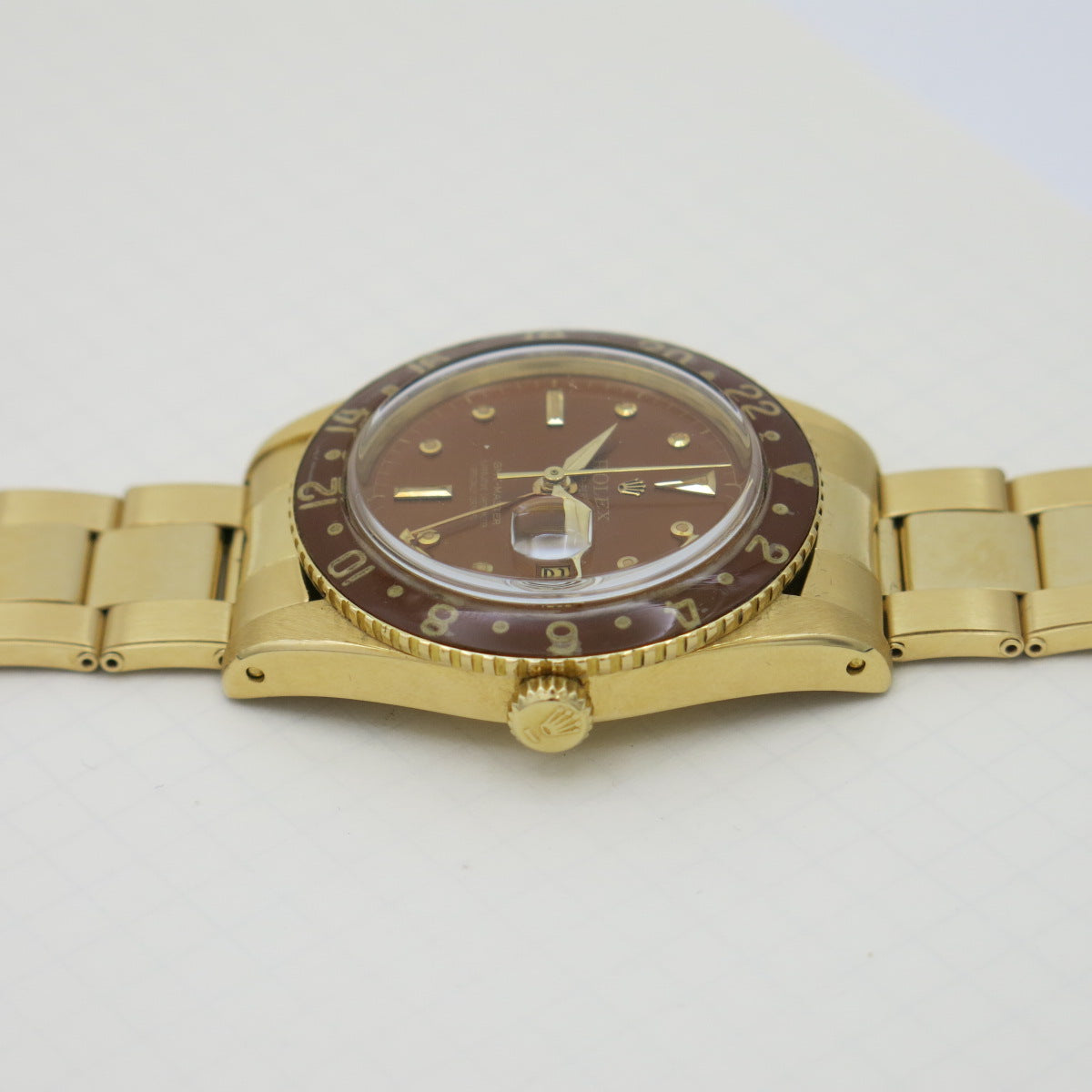 Extremely nice and rare, top condition Rolex Oyster Perpetual GMT Master 18 kt yellow gold ref. 6542 with original and fantastic bachelite bezel.